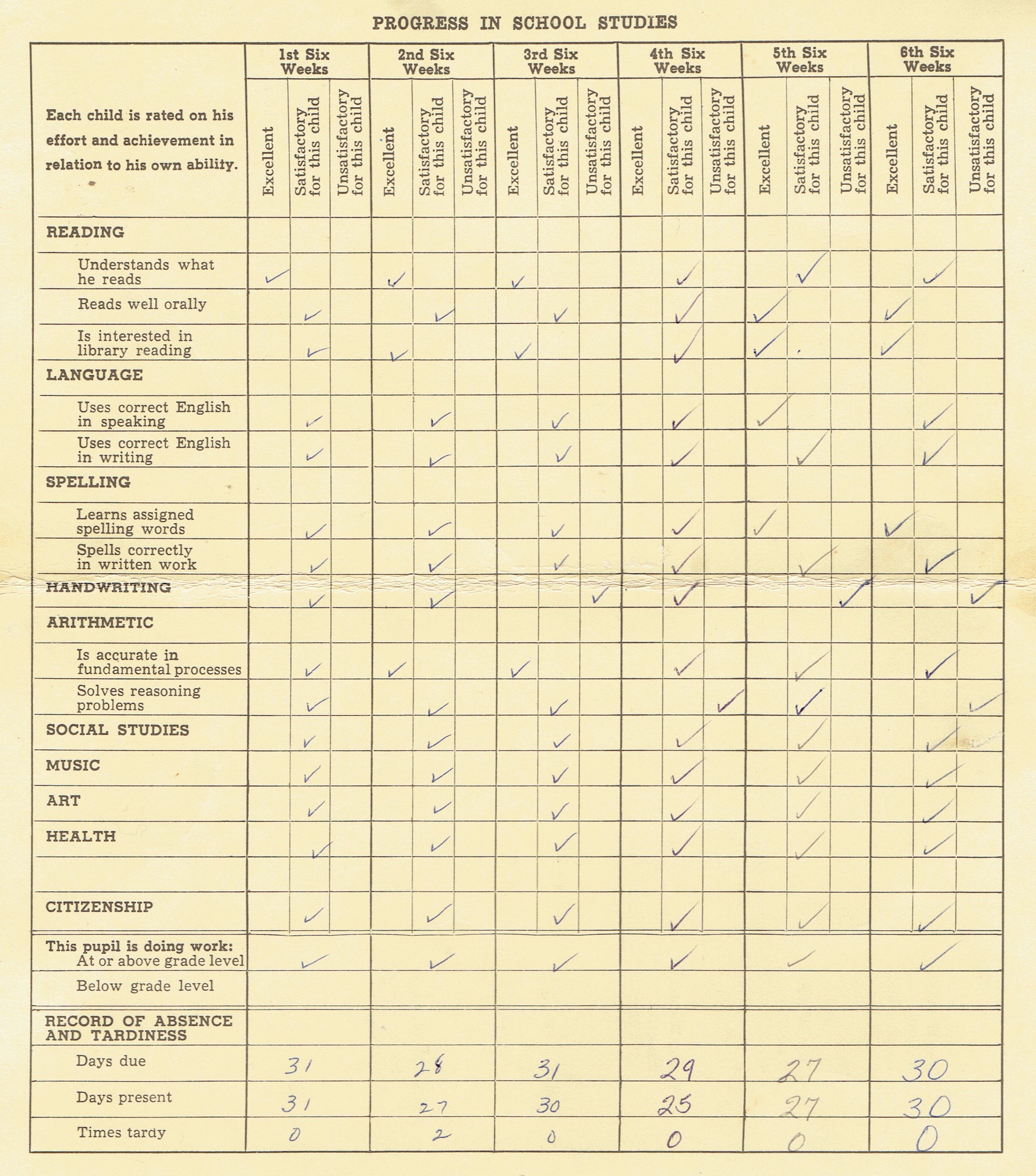 I was relieved when I got my final report card at the end of first grade. It clearly showed that I’d been promoted: